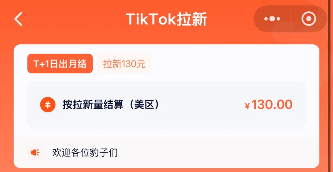 海外抖音(TikTok)拉新单价:130